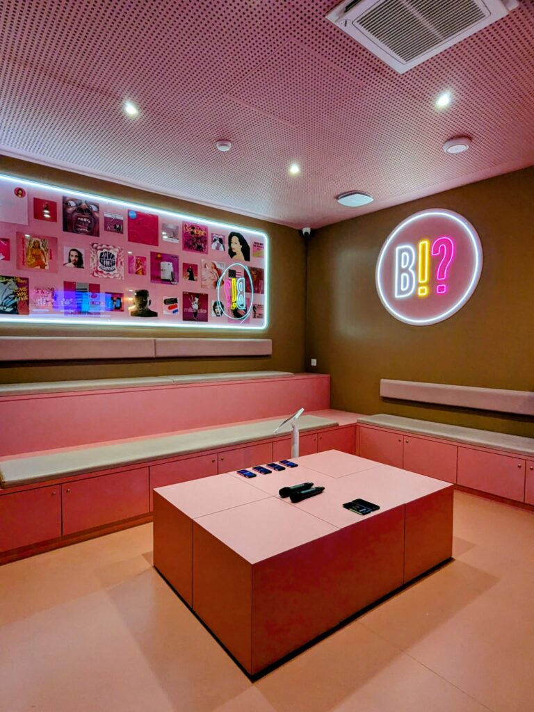 Amusoire c’est toujours un blind test, basé sur la reconnaissance vocale, autour de milliers de tubes de 1950 à 2025. Au choix, pléthore de playlists thématiques et 5 niveaux différents de jeu, pour jouer en équipe ou individuellement. Et ce toujours dans des salles privatives – pour 2 à 20 personnes – toujours nommées selon des chansons (Crazy in love et In da Club au Trinquet Village, La vie en rose, Back to black à Drawing House, Money Money Money ou encore Les mots bleus chez Môm) et toujours très hautes en couleurs.